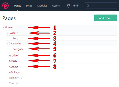 This page shows the content and a comment list with comment form provided by the FieldtypeComments which is shipped with ProcessWire. - Categories page (Template: simple-blog-categories)